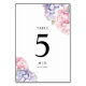 Numéro De Table Mariage d'Hydrangée rose pâle et pourpre