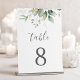 Beaux numéros de table de mariage avec eucalyptus aquarelle et feuilles dorées. Choix parfait pour les mariages en plein air.