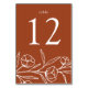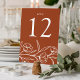 Elégante carte de numéro de table fleurie avec des fleurs blanches esquissées et des feuilles près du fond du design avec un arrière - plan en terre cuite. Personnalisez les cartes de table florale esquissées avec le numéro de table en lettres blanches classiques. Pour commander les cartes de table, modifiez et ajoutez chaque numéro à votre panier individuellement, puis retirez-le lorsque vous avez terminé. Conçu pour coordonner avec notre collection de mariages floraux esquissés.