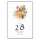 Cartes de numéro de table de mariage à motif floral aquarelle avec des accents de rose et d'or conçues pour être personnalisées rapidement et facilement selon les spécificités de votre événement.