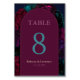 Numéro de table de mariage avec fleurs bordeaux de tons de joaillerie chic élégants. Ajoutez une touche de sophistication à vos tables de mariage avec ce panneau de numéro de table floral de tons de joaillerie chic et élégant. Doté d'un arrangement époustouflant de fleurs riches bordeaux, marine, fuchsia, magenta, turquoise et violettes, ce design améliore sans effort votre décoration de mariage. Parfait pour guider les invités à leurs sièges avec style, ce panneau de numéro de table allie une élégance moderne à une esthétique florale vibrante, ce qui en fait un bel ajout à votre réception de mariage.