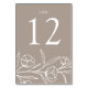 Elégante carte de numéro de table fleurie avec des fleurs blanches esquissées et des feuilles près du fond du design avec un arrière - plan taupe. Personnalisez les cartes de table florale esquissées avec le numéro de table en lettres blanches classiques. Pour commander les cartes de table, modifiez et ajoutez chaque numéro à votre panier individuellement, puis retirez-le lorsque vous avez terminé. Conçu pour coordonner avec notre collection de mariages floraux esquissés.