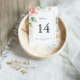Ce numéro de table de mariage floral vert de feuillage d'or géométrique est parfait pour un mariage moderne. Le design se compose d'un feuillage botanique vert et or peint à la main, avec des fleurs roses, rousses et blanches, qui ornent un cadre géométrique élégant. Il s'agit d'un numéro de table recto-verso. Ajoutez chaque numéro de table dont vous avez besoin à votre panier individuellement.