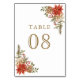Éblouissez vos invités avec cette carte de numéro de table élégante avec de belles fleurs de poinsettia rouges et des feuilles de pin rustique.