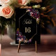 Numéro de tableau géométrique mariage floral noir violet bordeaux.