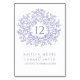 Numéros de tableau mariage monogramme de conception de feuilles en cercle. Ajoutez vos propres numéros de table par un, nom et date mariage en bleu violet sur un arrière - plan blanc. Autres couleurs et articles mariages correspondants disponibles. © Dessin et dessin de la feuille d'origine par Sarah Trett pour www.mylittleedenweddings.com sur zazzle.