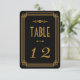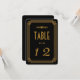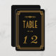 Ces numéros de table sont composés d'une palette de couleurs noir et or, d'un cadre géométrique et d'autres détails stylistiques inspirés de l'Art Déco et des années folles. Vous pouvez customiser les champs de texte d'exemple à votre convenance.