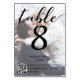 ce carte photo comporte à la fois le numéro de table et le code qr pour le menu mariage sur le même côté. carte recto verso, il a la même impression sur les deux côtés.