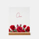 Numéro de table des roses rouges, clair, signe acrylique. Le nombre est écrit dans un script rouge mince avec de l'espace pour tous les nombres. Si vos tableaux sont à deux chiffres, mettez le texte sur l'autre avec "vingt", retournez, "trois" comme exemple. Des roses rouges réalistes forment une jolie bordure au bas de ces panneaux de 8x10 pouces qui ont l'option d'un support en bois. Les panneaux sont plus grands, mais celui-ci est le plus petit.