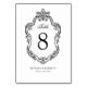 Découvrez l'élégance lors de votre journée spéciale avec nos numéros de table de Mariage Monogram Rococo méticuleusement fabriqués. Ces cartes permettent d'élever n'importe quel paramètre de table mariage, avec une simple toile de fond blanche ornée d'un cadre vintage noir et détaillé, et un modèle de numéro de table facile à personnaliser.