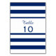 Cartes de numéro de table de mariage Royal bleu et blanc rayures. Motif à rayures bleues et blanches.