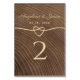 Simple, élégant, moderne, minimal, rustique numéro de table en bois mariage avec coeur de corde or.
