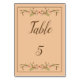 Voici des pancartes de table pour un mariage rustique spectaculaire. Ce design présente un fond beige rosé avec du texte écrit en brun. Il y a également une bordure marron. Très facile à personnaliser, commandez le vôtre dès aujourd'hui.