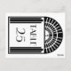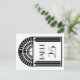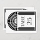 Carte postale en noir et blanc de style art déco mariage, imprimée sur les deux côtés et affichée en orientation portrait ou verticale. Un motif solaire et des rayures d'huile entourent la police décorative et la silhouette d'une mariée avec son marié. L'Art déco a été un style populaire dans les années 1920, 1930 et 1940.