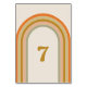 Ce design rétro de numéro de table mariage s'inspire de la tendance rétro les années 70. Il dispose d'un arc-en-ciel aux couleurs rétro. Ce design est parfait pour un mariage de style rétro, boho, discothèque ou les années 70. Tout le texte est personnalisable.