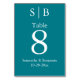 Numéro de table turquoise monogramme classique pour une réception de mariage, un dîner de répétition, des douches mariages et nuptiales ou des dîners d'anniversaire.