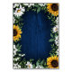 Navy Blue Sunflower Rustic Mariage Insert Cartes - sont décorées d'un arrière - plan en bois de grange bleu marine décoré de marguerites d'aquarelle, tournesols, verdure, souffle de bébé, et lis de la vallée.