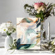 Belle carte numérique avec aquarelles abstraites dans des nuances de turquoise, terre cuite, ivoire et sarcelle.