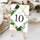 Elégante carte de numéro de table tropicale avec le numéro de table encadré par des feuilles tropicaux aquarelles dans les tons verts complétés par un faux feuillage de feuille d'or. La conception se répète au dos de la carte. Conçu pour coordonner avec notre collection Tropical Gold mariage. Pour commander chaque carte de numéro de table, tapez simplement le numéro et ajoutez-le à votre panier. Répétez pour chaque numéro jusqu'à ce que vous ayez terminé.