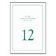 Numéro de table mariage simple avec un design élégant et intemporel avec votre monogramme de deux lettres, noms, date et numéro de table entouré d'une mince bordure. Tous les éléments de conception sont en vert émeraude sur un arrière - plan blanc et peuvent être changés en n'importe quelle couleur que vous souhaitez dans l'outil de montage de conception. Un design propre et classique, parfait pour un couple qui veut un numéro de table de style traditionnel avec une touche moderne. Ajoutez chaque numéro de table à votre panier individuellement.