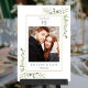 Ce élégant numéro de table feuille d'eucalyptus vert dispose de feuilles d'aquarelle délicats avec votre photo spéciale, nom et date encadrée par une bordure d'or. Conçu par Thisisnotme©