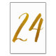 Tableau Numéro 24 : Cette carte de numéro de table de script de brosse décontracté est définie dans un faux papier doré. IMPORTANT : L'apparence du papier peint est un effet imprimé. Ce n'est pas un vrai papier d'aluminium. Si vous ne voulez pas cet effet, vous pouvez le supprimer comme ceci : 1) Cliquez sur "Customiser plus loin. 2) Trouvez l'image qui dit feuille z-or et supprimez-la. Choisissez ensuite votre propre couleur dans les couleurs arrière - plans.