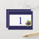 Ajoutez du style et du panache à vos tables mariages avec ces numéros de table d'orchidées personnalisés avec un arrière - plan bleu et une orchidée à gradient vert et violet.