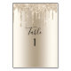 Cartes mariage Numéro de table avec parties scintillant à goutte couleur Champagne. Disponible en deux papiers.