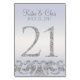 Ce design moderne de carte de table présente des accents de parties scintillant en faux argent avec un arrière - plan périwinkle. Parfait pour les mariages élégants et modernes. Les cartes de numéro de table vont jusqu'à 30.