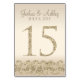 Cette carte de table moderne présente des accents de parties scintillant en faux or avec un arrière - plan de champagne. Parfait pour les mariages élégants et modernes. Les cartes de numéro de table vont jusqu'à 30.