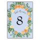 Numéro De Table Pêcher bleu clair Mariage Roses Floral