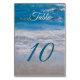 Décor sur le thème de la plage bleu mariage de la côte. Nautique été océan vagues tropicale numéros de table de réception. Belle, chic, tendance, moderne, cool, élégante bannière personnalisée. Personnalisez votre texte. Copyright de l'image Marg Seregelyi Photography.