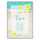 Ce design présente des fleurs frangipani/plumeria jaunes sur un arrière - plan de plage tropical. Un design tropical élégamment encadré de fleurs frangipanières jaunes et de formulation centrée. Le numéro du tableau est mis en valeur par une couleur turquoise choisie dans l'eau de l'océan. Ces fleurs tropicales populaires d'Hawaii sont idéales pour un mariage de plage de destination élégant. Conception de numéro de table de mariage tropical avec des éléments modernes. Des invitations de mariage et d'autres articles de papeterie sont également disponibles. Customisez le numéro et achetez chaque numéro de table individuellement en fonction du nombre de numéros de table dont vous avez besoin.