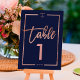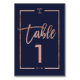 rose Gold typographie sur personnalisable marine bleu rose or demi-cadre, et faux rose or géométrique rayures chic numéro de table mariage, parfait pour élégant, mariage de plage,