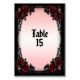 Belles roses rouges profondes sur le cadre en fer forgé un numéro de table. Il fait partie d'une suite mariage appelée Red Rose Gothic Il est facile de coordonner tout pour votre mariage une fois que vous avez choisi le thème et la palette de couleurs appropriés. Choisissez un thème mariage unique pour rendre votre journée spéciale parfaite. Le Fancy House propose un large assortiment de suites mariages à thèmes et couleurs variés. Veuillez vérifier votre texte avant l'achat final