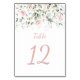 Numéro De Table Roses rose pâle et verdure vert Sage