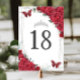 Numéro De Table Roses rouges vibrantes Papillons argentés Annivers