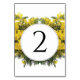 Ce design présente des fleurs d'acacia jaune de wattle rustique originaires d'Australie. La couronne de fleurs jaunes de boucherie australienne encadre le numéro du tableau. Les tons jaunes des fleurs de bétail et sa verdure créent une atmosphère rustique fleurie de jardin de campagne. Conception de carte de numéro de table Rustique mariage avec des éléments modernes. Des invitations de mariage et d'autres articles de papeterie sont également disponibles.