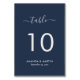 Carte de numéro de table marine bleu et argent mariage personnalisées avec une police de script moderne. Éléments correspondants disponibles.