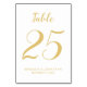 Script moderne Blanc et Mariage d'or Numéro de table avec titre en or police de script moderne avec détails en or police sans serif moderne sur arrière - plan blanc. Remarque : Les détails du papier sont simulés dans l'illustration. Il n'y aura pas de métal sur ce produit.