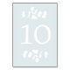 Cette carte de numéro de table de mariage moderne branchée présente Eucalyptus Plante vert dessiné à la main dans un arrière - plan bleu clair avec Eucalyptus blanc et numéro. Oeuvre de Paula Pecevich ・ La Bella Rue. Pour toute question sur les changements de conception personnalisés par le concepteur indépendant, veuillez envoyer un courriel à paula@labellarue.com AVANT de customiser ou de passer une commande.