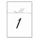 Cet élégant numéro de table de calligraphie noire est parfait pour un mariage simple. Le design neutre présente une carte minimaliste décorée de typographie romantique et fantaisiste. La carte s'imprime à l'avant et à l'arrière (double face). Les numéros peuvent être modifiés dans le champ de personnalisation.