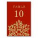 Numéro De Table Simple hiver Noël Mariage or rouge