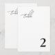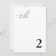Ajoutez une touche d'élégance élégante à votre réception de mariage avec ce numéro de table minimaliste moderne. Conçue avec des lignes épurées et une typographie contemporaine, cette carte de numéro de table complète parfaitement tout thème mariage tout en maintenant une esthétique sophistiquée. Parfaits pour guider vos invités vers leurs sièges avec style, ces numéros de table sont un complément pratique mais beau à votre décor de table. Le design minimaliste garde l'accent sur l'ambiance de votre événement, en se mélangeant sans effort avec des arrangements floraux, des bougies ou d'autres pièces centrales. Imprimés sur un carton de haute qualité, ces numéros de table sont durables et personnalisables pour s’adapter à la palette de couleurs et aux préférences de police de votre mariage. Idéales pour les mariages modernes et chics, elles sont un détail subtil mais impeccable qui améliore l'expérience globale pour vous et vos invités.