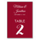 Numéro De Table Simple moderne crammson rouge élégant mariage