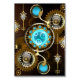 Turquoise lenses with antique watch with brass gears and golden keys on rusty, brown background. Steampunk style.
