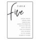 Numéro De Table Table à script manuel CINQ + Noms d'invités