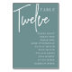 Des cartes numériques simples et chic en turquoise et blanc poussiéreux font une déclaration élégante à votre mariage ou événement. Le design comporte "table [nombre]" dans un mélange d'écriture serif classique et manuscrite, avec des noms d'invités individuels en dessous. Le design se répète de part et d'autre. Cartes numérotées individuellement vendues séparément; commandez chaque numéro de table individuellement de notre collection.