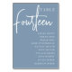 Des cartes numériques simples et chic en bleu Dusty et blanc font une déclaration élégante à votre mariage ou événement. Le design comporte "table [nombre]" dans un mélange d'écriture serif classique et manuscrite, avec des noms d'invités individuels en dessous. Le design se répète de part et d'autre. Cartes numérotées individuellement vendues séparément; commandez chaque numéro de table individuellement de notre collection.