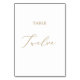Cette délicate calligraphie dorée table douze numéro de table est parfaite pour un mariage moderne. Le design minimaliste romantique présente une belle et élégante typographie de champagne jaune doré sur un arrière - plan blanc au look épuré et simple. La carte s'imprime à l'avant et à l'arrière (double face). Les autres numéros de tableau de la collection sont vendus séparément.